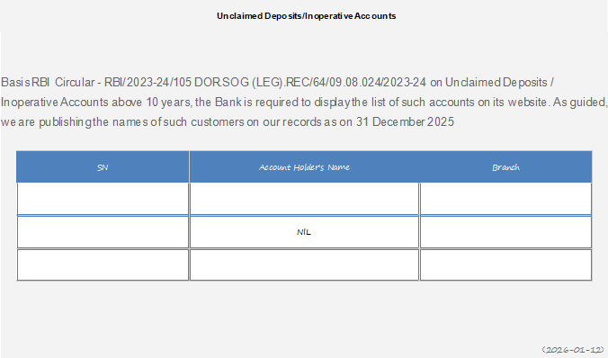 Unclaimed deposits accounts list as on December 31, 2025